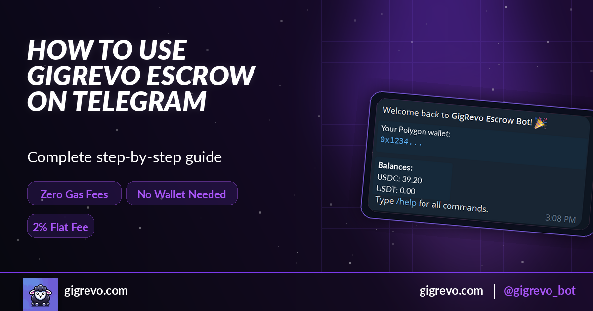 Everything you need to know about creating, managing, and completing escrow payments through the GigRevo Telegram bot. No wallet required. No crypto experience needed. No gas fees.